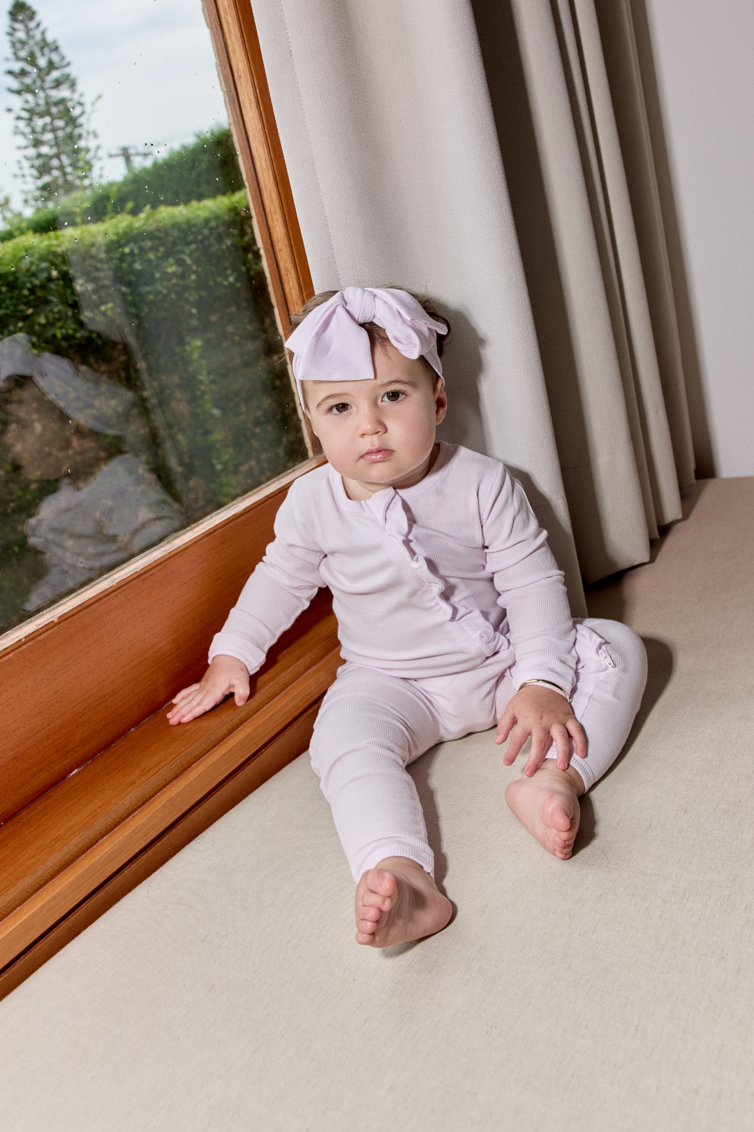 New, B&B baby bow headband! The perfect accessory to match babies swaddle or zipper sleeper! One size fits all, simply adjust the length of the headband by tying a new bow. Made in our most buttery-soft bamboo blend.