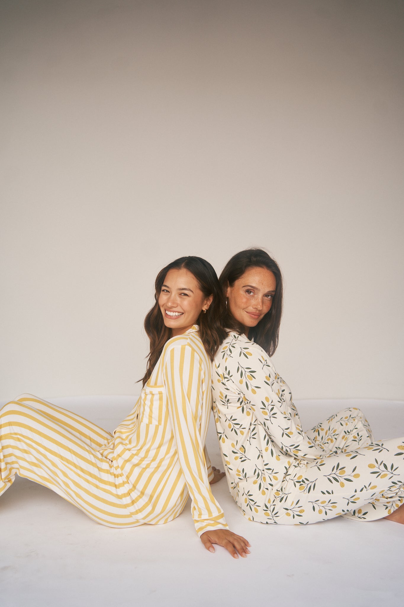 Our beautiful new LEMON STRIPE print available in our Ladies Collared Set. Cozy up in this oversized, long sleeve button up paired with wide leg pants and made in our signature bamboo blend.